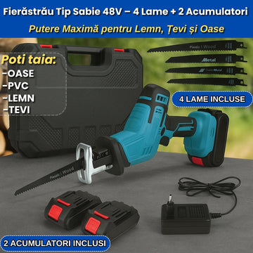 Detalii produs: 🔋 Fierăstrăul tip sabie de 48V oferă putere excelentă pentru tăierea rapidă a...